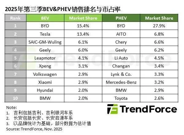 根據TrendForce集邦咨詢今日發布的最新調查報告,2025年第三季度全球新能源車(NEV)新車銷售量達539萬輛,同比增長31%。