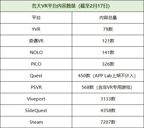作為全球最大 VR 內容平臺,SteamVR 坐擁近 8000 款內容。在一體式 VR 硬件生態擴張如此迅速的今天,它依舊能夠獨樹一幟,屹立不倒,幾乎每周都有相對穩定的內容增長量,超過 PICO、Quest、Viveport、PS VR2 等平臺。