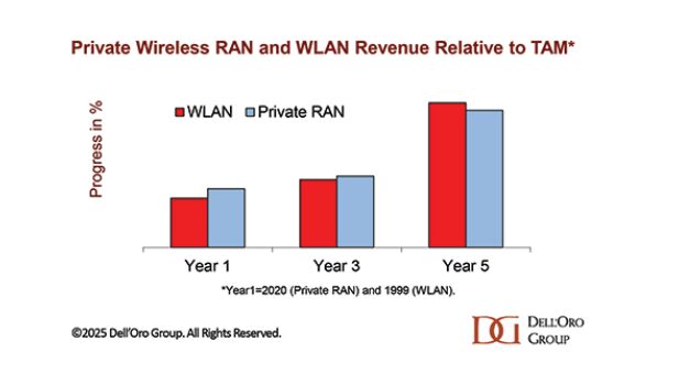 根據市場研究公司Dell'OroGroup的最新報告,無線專網(PrivateWireless)市場的增長繼續繼續超越公共無線接入網(RAN)市場的平穩趨勢。其最新《無線專網報告》的初步研究結果表明,推動2024年實現約40%增長的積極勢頭延續至了2025年上半年,全球無線專網RAN市場收入在上半年加速增長。