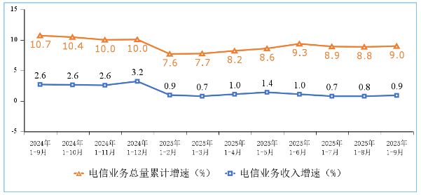 2025年前三季度,通信業整體運行平穩。電信業務量收入穩定增長,5G、千兆、物聯網等網絡基礎設施建設持續推進,連接用戶規模穩步擴大,移動互聯網接入流量較快增長。
