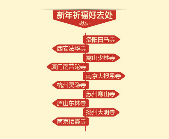 元旦假期不得不提到的一項重要活動便是祈?缒。從全國著名寺廟類景區的門票售賣情況來看,12月31日-1月1日的門票售賣情況最為火爆。全國范圍內最受歡迎的寺廟類景區前十名為洛陽白馬寺、西安法華寺、嵩山少林寺、廈門南普陀寺、南京大報恩寺、杭州靈隱寺、蘇州寒山寺、廬山東林寺、揚州大明寺、南京棲霞寺。
