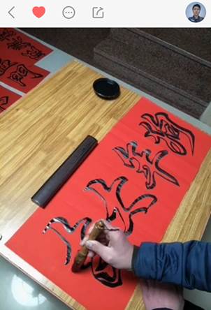 除了小朋友,有的單位還組織員工一起執起毛筆,手寫春聯,為春節增添氣氛。從用戶上傳的視頻中可以看見,“一年好景同喜到,四季財源順時來”“和順一門生百福,平安二字值千金”等執筆者對家庭新一年的美好愿景的對聯已經掛好,準備等墨跡晾干后再讓員工們帶個好彩頭回家。