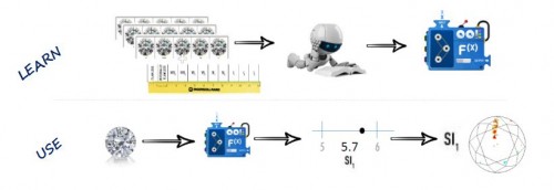 例如,用傳統方式判斷鉆石的凈度時,鑒定師需要鑒定鉆石內、因自然生長而形成的“胎記”——內含物的分布、形態、數量,需要測量瑕疵間具體的距離,繪制出瑕疵并說明每個瑕疵的詳情。因此,評級過程會耗費大量人力,過程漫長又乏味,且主觀性非常強,往往導致同一顆鉆石在不同實驗室或被不同鑒定師鑒定后得到不一致的分級結果。