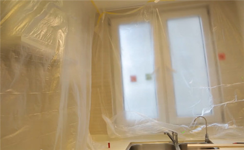 2、廚房保護。機器到位后,用戶可預約服務技師上門安裝。服務技師上門后,會先對廚房進行保護。將餐具、家電這些物品搬離廚房,然后做好防塵準備,鋪設頂部防塵膜和底部防塵膜,做到保護好每個細節。