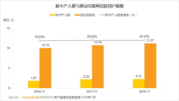 1、新中產人群在2017年突破2億大關、并在2018年增長至2.3億