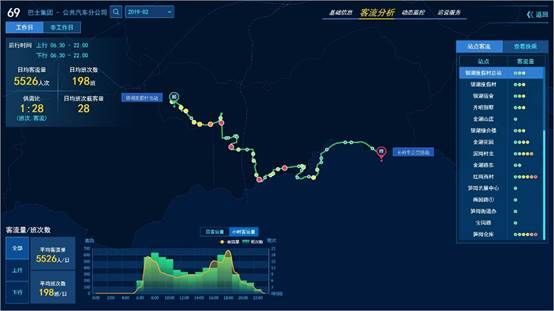 該平臺的“綜合分析系統”可謂是一個智慧“大腦”,它依托GIS可視化、大數據分析等技術,打造了“一動三靜、宏微結合”的公交大數據分析平臺。“一動”指的是公交運營動態信息監測,能夠宏觀掌控當日實時的運營班次、里程、客流量、在線率和運營速度等五大核心指標,并聚焦到具體線路和車輛,為企業運營和政府部門監管提供數據支持。“三靜”是從公交行業積累的海量數據入手,分客流分析、基礎資源、運營服務三個方面對行業的發展態勢進行分析,可定期自動統計公交企業運營的各項指標,為行業決策、政策制定提供了全面、詳實的數據保障。