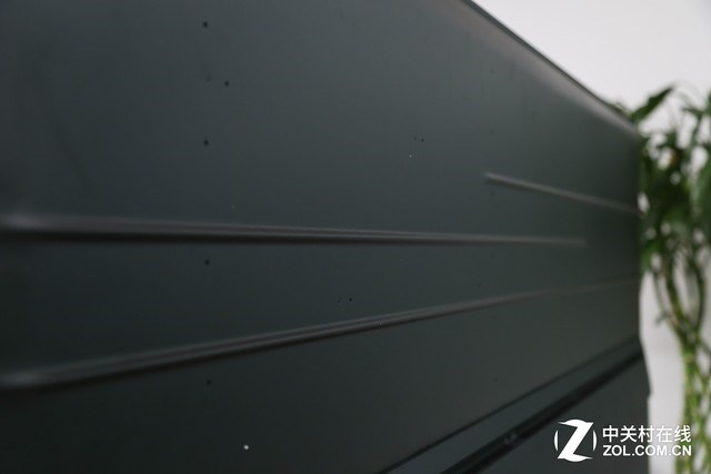 再來看看這臺電視的背部,光從用料來看就沒讓我們失望,整塊金屬背板使用了磨砂工藝,怎么看都是舒服的,整體上給人一種低調大氣的感覺。