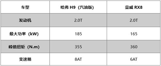 具體到車型上,我們選擇了2017款哈弗H9汽油型2.0T四驅豪華版(后簡稱哈弗H9)和2018款榮威RX8 30T四驅玩家定制星際穿越版(后簡稱榮威RX8)做對比。這兩款車指導價接近,都是7座布局的高配車型,是用戶選購時的重點備選。本次對比我們將從動力總成、底盤、越野能力、做工細節這幾個消費者最關心方面來盤點,究竟誰才能是這個細分市場中真正的標桿。