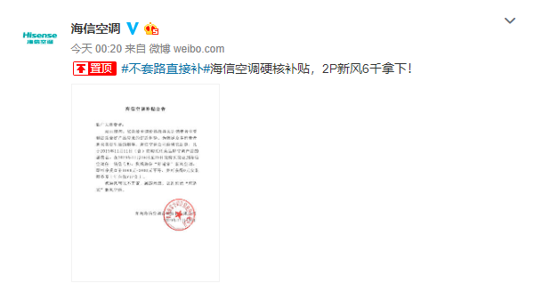 誰也沒想到的是——對于行業老大格力電器在雙十一前夕挑起的空調大戰,敢于站出來持續迎戰的既不是規模上相仿的美的,也不是喜歡攪局的奧克斯,反倒是一向低調的海信空調。繼11月14日海信(山東)空調有限公司總經理別清峰以“爾要戰,便戰”的宣言正面硬剛之后,海信空調持續在深夜放出大招,15日凌晨再度掛出公告,宣布將補貼對象從經銷商直接擴大到終端消費者。