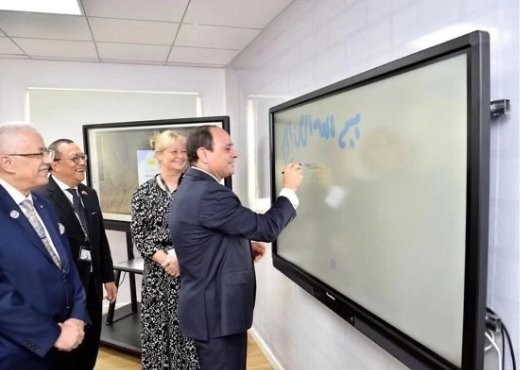 塞西總統體驗了網龍的智慧教室類創新產品、普羅米休斯互動大屏、sandbox、MDM等產品,并在普羅米休斯互動大屏上親自題詞,表達了他的祝福。
