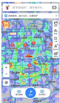 打開百度地圖的熱力圖圖層,用戶可以查看到實時的人口流量密度,以此來決定出行路線,避開商圈、交通樞紐等人流密集場所。