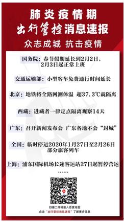 為便利公眾了解肺炎疫情實時消息、掌握各地出行路線封堵情況、獲取就診信息與服務,百度地圖于1月27日(大年初三)上線“肺炎疫情期出行管控消息速報”頁面。該頁面實時更新疫情最新消息動態,聚合疫情期百度地圖駕車出行、公交出行、旅游休閑、遷徙地圖、發熱門診查詢、湖北籍游客定點酒店、全國路況平臺等功能入口。用戶通過百度地圖首頁上方的黃條提示,即可進入該聚合頁面,及時獲取疫情相關信息,并依據頁面標識指引快速找到所需出行、就診等功能服務。