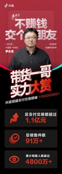 單場支付交易總額突破1.1億、單場直播觀看總人數超過4800萬,這樣的數據在直播行業普遍需要一個積累的過程。而羅永浩與抖音合力交出的這份首播成績單,無疑給雙方強強聯合、共拓直播電商增添了更多可能。