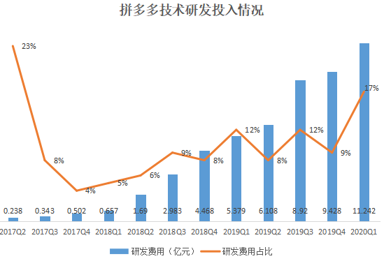 并且,黃崢極其注重公司在技術研發方面的投入,多次表示拼多多是一家以技術為導向的公司。拼多多財報顯示,2019年,拼多多平臺研發費用高達38.7億元,同比2018年增加247%,占平臺總收入的12.8%。所以在黃錚卸任,CTO陳磊無疑是最適合的接班人。