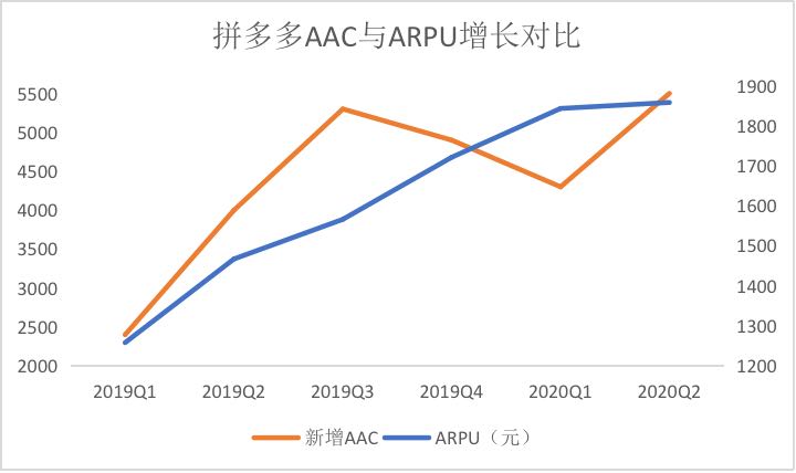 對于這次ARPU增長乏力,拼多多給出的解釋是由于當季AAC的大幅增長,意思是基數變大拉低了ARPU。
