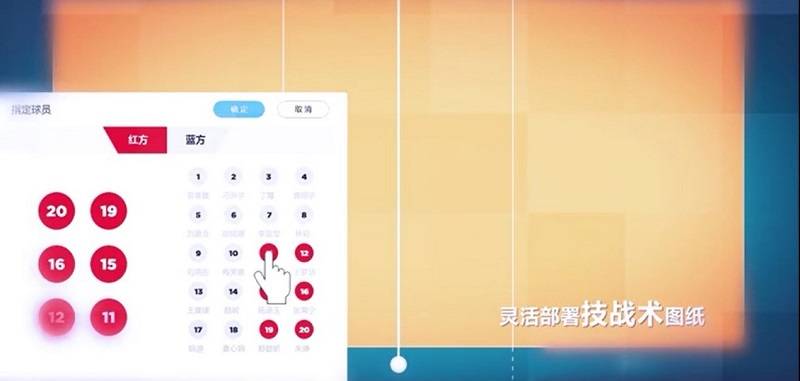 兩軍對壘,自然先要選出對抗的兩方,智能虛擬戰術板可以設置紅藍兩方,每一方,教練都可以選擇哪些隊員上場。
