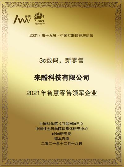 12月18日,經中國科學院主管的權威媒體《互聯網周刊》、中國社會科學院信息化研究中心等機構的專業評選,當日共有多家企業獲獎。來酷科技憑借對業內領先OMO線上線下聯合營銷模式獲得2021年度智慧零售領軍企業獎。