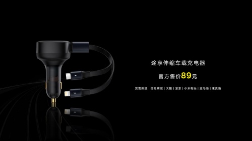 途享伸縮車載充電器售價 89 元,在天貓、京東、小米有品、亞馬遜、速賣通、倍思商城上線銷售。