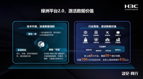 在數字經濟飛速發展的當下,行業數字化轉型以數據為關鍵要素,在促進生產力發展和改進生產方式的過程中,催生了一系列的新模式、新應用、新場景,為推動經濟社會高質量發展提供新動能。在IaaS云基礎能力進化和提升的基礎上,生長在云上的行業智慧化應用推動了轉型的縱深發展,也讓數據價值得到了更廣泛的認可,云計算的創新正在從“云優先”向“數優先”過渡。面對行業轉型對數據的采、存、算、管和用的能力提出更高要求,紫光云與智能事業群推出了全新的綠洲平臺2.0,以技術能力的全面升級加速數據流轉,并且聚焦行業場景化應用落地需求打造行業套件,助力百行百業激活數據價值。