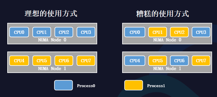 因此,從CPU體系結構中可以看到,如果采用一些錯誤的CPU分配方式,可能會導致進程訪存速度急劇下降,嚴重影響應用程序的性能。