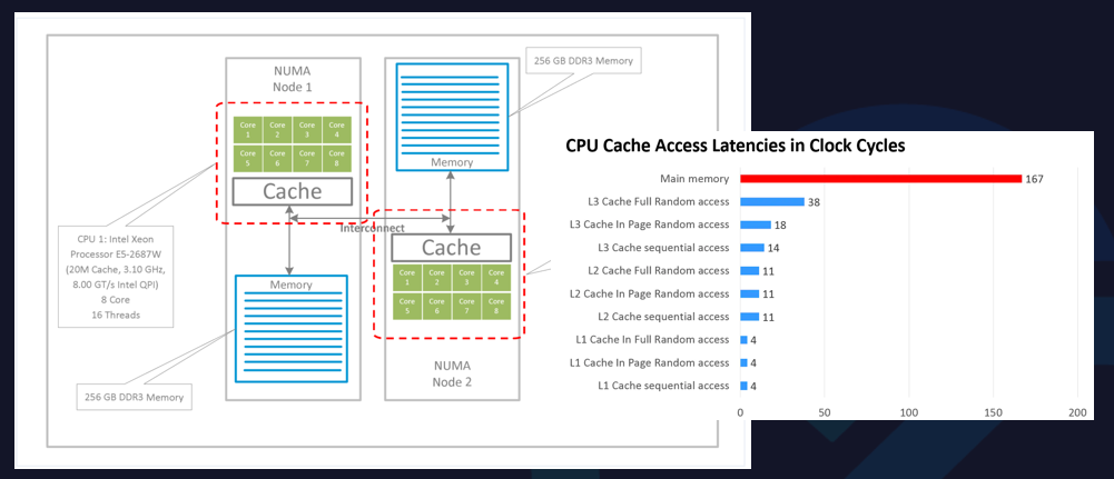 跨NUMA訪存會帶來更嚴重的性能瓶頸。