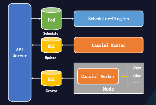 與此同時,節點Cassini-Worker通過List Kubelet的10250端口獲得節點上的所有Pod,再從Pod Annotations中獲取調度器的拓撲調度結果。