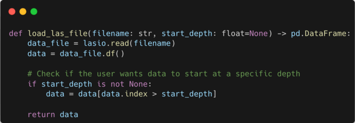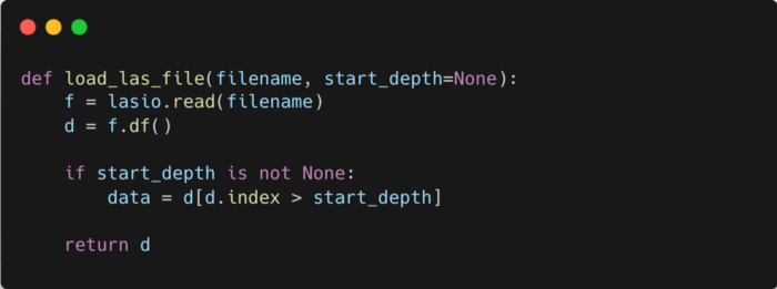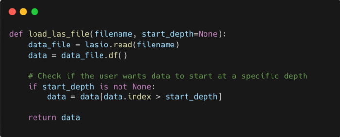 如果我們為這些變量指定適當的名稱,我們將能夠知道其中一個變量是由lasio.read調用讀取的data_file,并且很可能是原始數據。data變量告訴我們這是我們正在處理的實際數據。