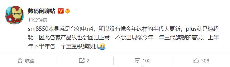 近日,微博數碼博主 @數碼閑聊站曝光了有關下一代高通旗艦處理器的消息。據悉,因為繼續沿用臺積電 4nm 制程工藝的緣故,明年的高通旗艦芯片 SM8550 并不會像今年一樣出現半年大更新的情況,而且所謂的 Plus 版本預計也是在原芯片的基礎上進行了超頻。