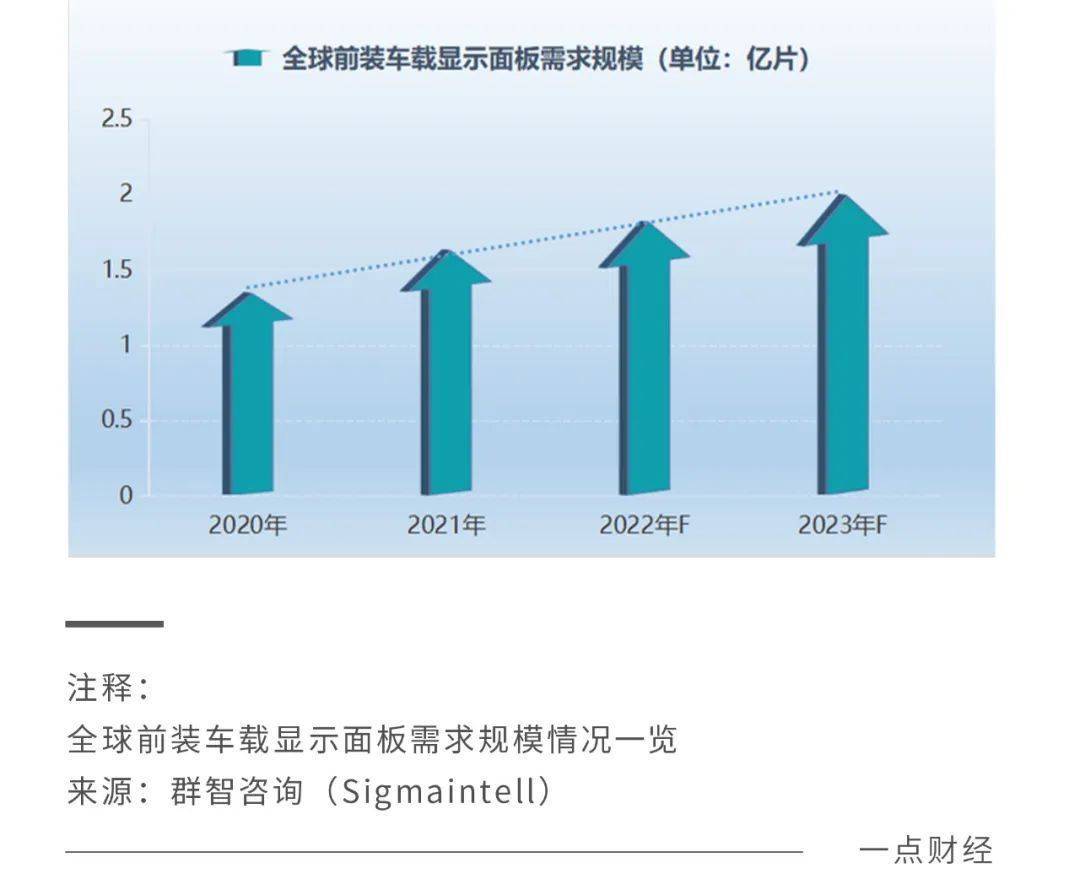 根據群智咨詢統計數據,2021年全球前裝車載顯示面板的需求規模約為1.6億片,同比增長約21.2%。預計到2022年,該需求規模將達到1.8億片,同比增長約9.2%,未來5年也將保持6%以上的復合增長率。