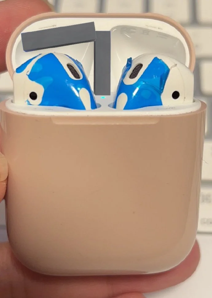 圖片曝光了初代AirPods的粉紅色外殼,但內部以及AirPods耳塞本身仍然是白色。外殼同白色發布版一樣為光面。