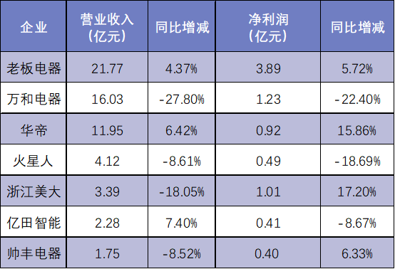 今年*季度,7家廚電上市企業中,超半數營收、利潤雙下滑。在這其中,傳統廚電企業老板電器與華帝股份,在低迷的市場環境中仍然實現了營收與凈利潤的增長,實屬不易。