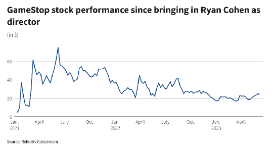億萬富翁科恩曾在2017年出售在線寵物產品零售商Chewy,獲利35億美元。他自2021年開始出任游戲驛站董事長,他還是大股東。