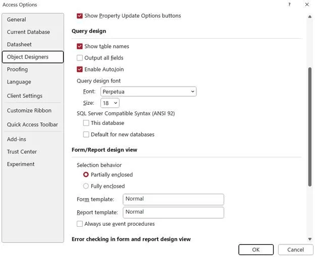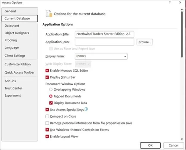 用戶可以在 Access 中開啟或關閉 Monaco SQL 編輯器。注意,Monaco 編輯器僅在 Microsoft 365 的 Access 中可用,其他版本如 Access 2024 將繼續使用 monochrome 編輯器。