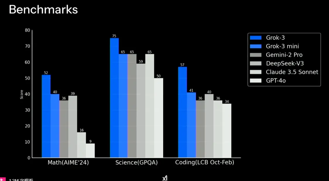 2月18日,馬斯克旗下的xAI發布了大模型Grok 3。