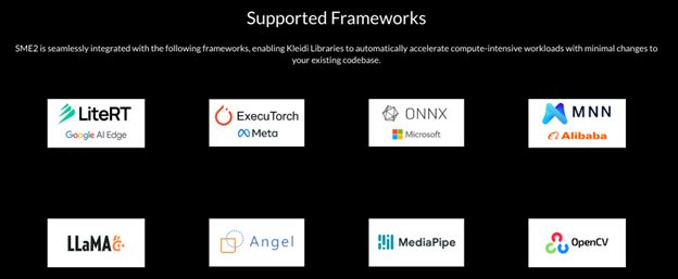 重要的是,安卓已經準備好支持 SME2。SME2 在 Google 的 XNNPACK 庫中啟用,并支持 llama.cpp、阿里巴巴的 MNN 和微軟的 ONNX 等框架。